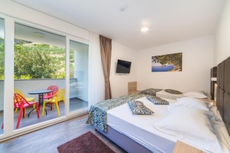 Oblázková, cca 30 m vzdálená a s pozvolným vstupem do moře. Díky částečnému zastínění borovicemi je vhodná pro rodiny s dětmi nebo pro ty z Vás, kteří dáváte přednost příjemnému stínu před horkými slunečními paprsky.