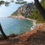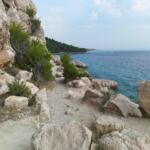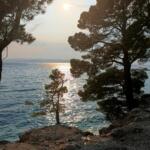 u oblázkové pláže dlouhé více než 2 km. Nachází se v parku se středomořskou vegetací.